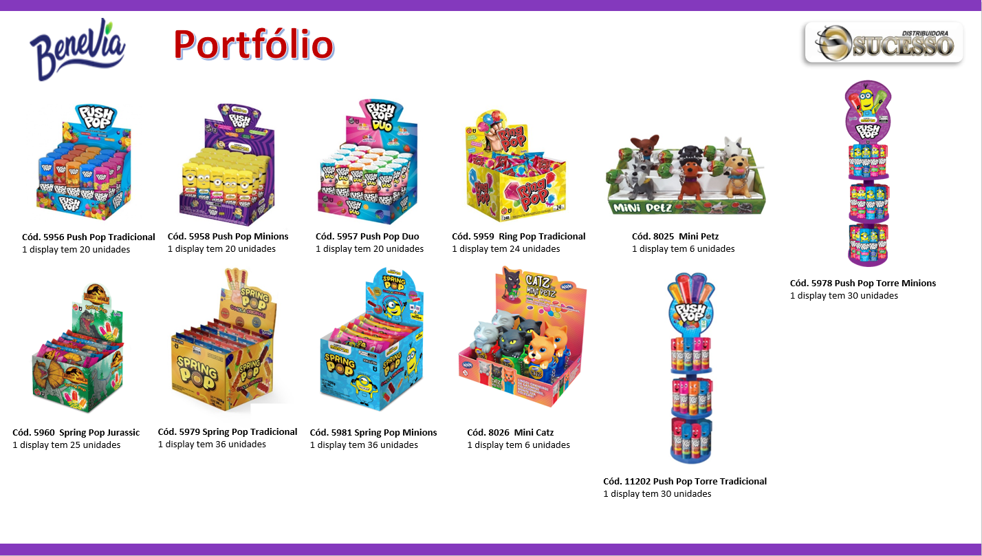 Benevia é uma empresa internacional que produz e vende produtos deliciosos e divertidos, como Push Pop, Ring Pop e Spring Pop, dentre outras marcas.