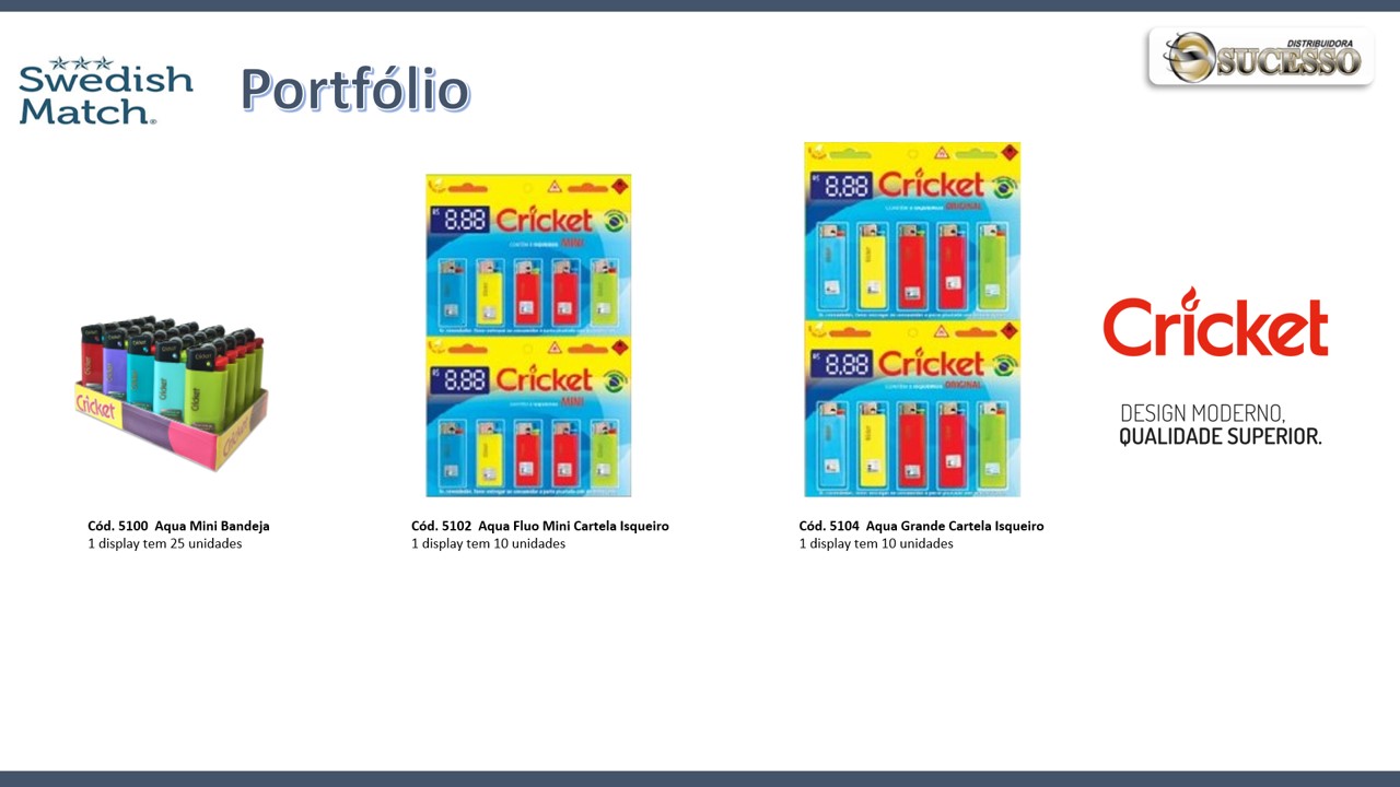 O Cricket é uma marca conhecida de isqueiros, produzidos pela Swedish Match. Esses isqueiros são populares por sua praticidade, tamanho compacto e design elegante. Eles foram introduzidos no mercado internacional e ganharam popularidade em diversos países.